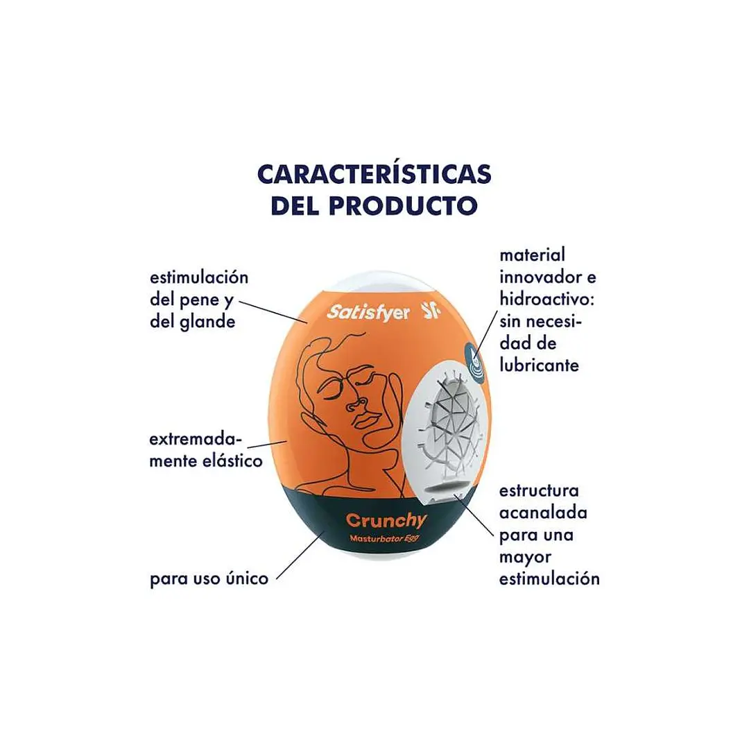 Descripción: Los huevos masturbadores Satisfyer tienen una textura similar a la piel y deleitan tanto el base como la punta del pene. Las diferentes formas interiores sorprenden y deleitan con sensaciones matizadas.